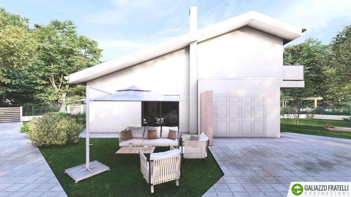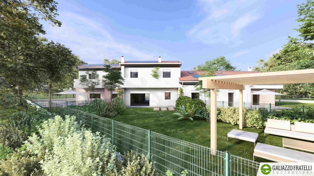 IN VENDITA Proponiamo in vendita una porzione laterale di trifamiliare di nuova costruzione situata in Via Cavour, nella tranquilla e ricercata zona di Rio, nel comune di Ponte San Nicolò (PD). Inserita in un elegante contesto residenziale composto da sole tre unità, questa soluzione si distingue per la maggiore metratura e per la posizione di testa, che garantisce ulteriore luminosità, maggiore privacy e un giardino più ampio rispetto alle porzioni centrali.L’abitazione si sviluppa su due livelli con spazi interni generosi e ben distribuiti. La zona giorno, ampia e particolarmente luminosa grazie alle numerose aperture verso l’esterno, si affaccia direttamente sul giardino privato creando un piacevole collegamento tra interno ed esterno, |