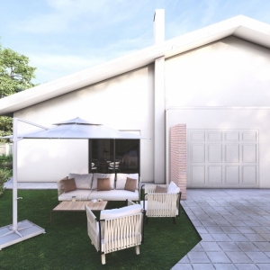La porzione laterale si distingue per la maggiore metratura e per un giardino più ampio, che assicura ulteriore privacy e luminosità, mentre la porzione centrale mantiene ambienti ben proporzionati e un’elevata qualità abitativa, con una disposizione “a schiera” che non rinuncia all’indipendenza grazie agli accessi separati e alle divisioni ben definite.